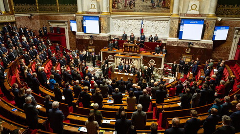 Il parlamento francese durante il minuto di silenzio in tributo al giovane attivista di estrema destra che è morto venerdì a Lione. (foto Getty)