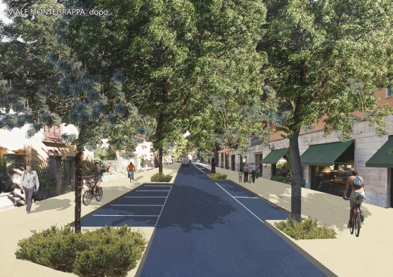 Appare evidente che ci sia un noi, italiani e lavoratori ossia automobilisti, e un loro, immigrati e parassiti ossia ciclisti. Un noi e un loro che non si può far stare in un unico luogo come vorrebbe fare la giunta comunale. Il progetto in questione è quello dell'ammodernamento, tra l'altro grazie ai fondi del Ministero dell’Ambiente per la mobilità sostenibile, di viale Montegrappa. Il piano prevede la creazione di una pista ciclabile su entrambi i lati della carreggiata, la sostituzione degli alberi, una nuova illuminazione, la ridefinizione dei posti auto e il restringimento della carreggiata da 6 a 4,5 metri. Nulla più e nulla meno di quello che sta succedendo in altre città italiane. L'idea è semplice: favorire lo spostamento in bicicletta per ridurre quello a motore. E' qualcosa che in tutta Europa conoscono bene e ha semplici ma significativi benefici: tra i tanti, la riduzione delle auto in città, il miglioramento della qualità della vita, la riduzione delle emissioni, la riduzione degli incidenti e quindi delle spese sanitarie.