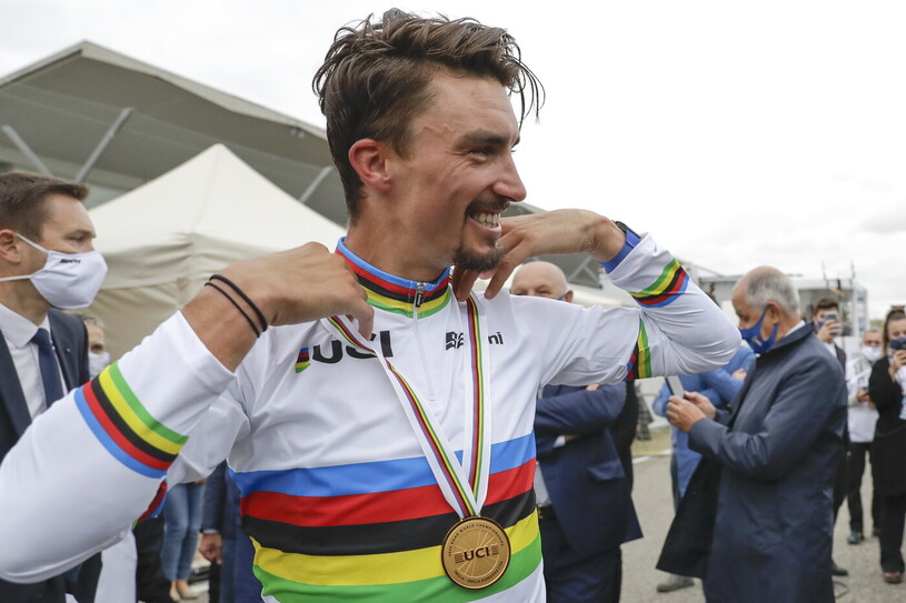 Il francese conquista i mondiali di ciclismo. Van Aert e Hirshi completano il podio