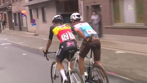 Mille e mille volte più una. Oggi, in Belgio, al BinckBank Tour tra Oliver Naesen, caduto e ammaccato, e Dries De Bondt, anch'egli caduto, anch'egli ammaccato, ma meno.
