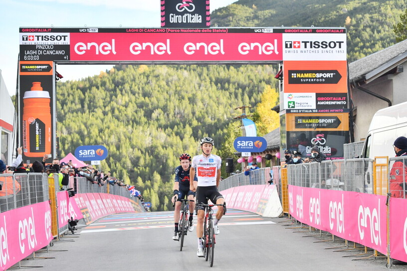 Non l’ha avuta Rohan Dennis quando si è messo davanti al gruppo poco dopo metà ascesa e ha iniziato a sparpagliare uomini e ambizioni. Davanti due pariglie: quella della Ineos con lui e Tao Geoghegan Hart e quella della Sunweb con Wilko Kelderman e Jai Hindley. Il gioco delle coppie è durato poco. L’australiano ha accelerato ancora, ha sparigliato tutto, lasciando a bocca aperta, ma non ancora asciutta, Kelderman. Ha continuato così sino in cima e poi a scendere e ancora a salire verso il traguardo. Lì è durato qualche centinaio di metri, poi non ha retto, ha lasciato al compagno la strada spianata. E l’inglese non ha potuto far altro che continuarlo il gioco. Solo che non era più quello di prima. Perché Kelderman era staccato ma non spacciato, inseguiva, anche se a distanza, la maglia rosa che Joao Almeida aveva iniziato a seminare lungo i tornanti della Cima Coppi. Perché Hindley non si schiodava dalla sua schiena e una mano non poteva darla per ragioni (e opportunità) di squadra, rimaneva a ruota e sordo agli incitamenti di Tao. Nemmeno un non posso è uscito dalle sue labbra sulla strada che portava alle Torri di Fraele. Nemmeno un grazie dopo il passaggio primo e a mani alzate sotto lo striscione d’arrivo. Hindley ha vinto la volatina. Geoghegan Hart ha sconvolto ciò che c’era, ha allargato tutto a tal punto da restringerlo in quindici secondi. Quindici battiti d’orologio che separano la nuova maglia rosa, Wilko Kelderman, dal terzo posto, quello che occupa ora l’inglese della Ineos.