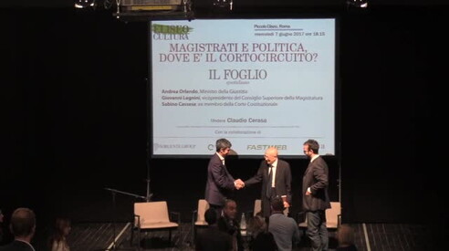 Mercoledì 7 giugno al Piccolo Teatro Eliseo di Roma il Foglio ha organizzato il dibattito "Magistrati e politica, dov'è il cortocircuito?". Sul palco con il direttore Claudio Cerasa si sono confrontati il ministro della Giustizia, Andrea Orlando, il vicepresidente del Csm, Giovanni Legnini e Sabino Cassese, ex membro della Corte costituzionale.