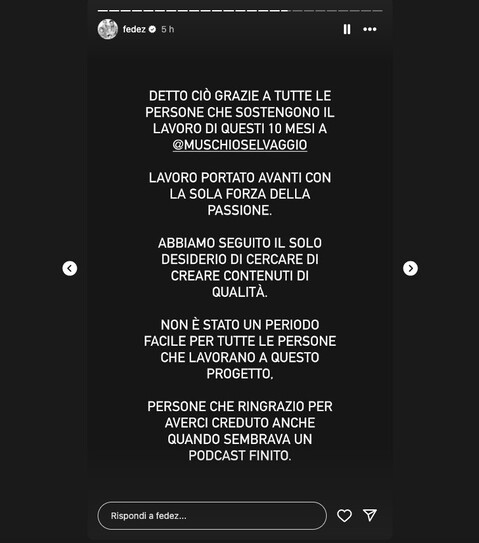 Dopo la notizia, Fedez ha pubblicato una serie di storie Instagram che sembrano smentire lo scenario legato all’applicazione della clausola della roulette russa. "Il tribunale di Milano non ha 'decretato' che le quote appartenenti a me debbano essere vendute a Luis Sal. Anche perché la causa che deciderà sul merito della vicenda non è ancora iniziata. Di conseguenza, non sono stato esautorato da nulla tanto è vero che le puntate continueranno ad andare in onda". Della stessa linea è anche il comunicato della Doom, la società di Fedez gestita dalla madre che controlla il podcast, che smentisce il gioco contrattuale venutosi a creare attraverso questo particolare strumento.