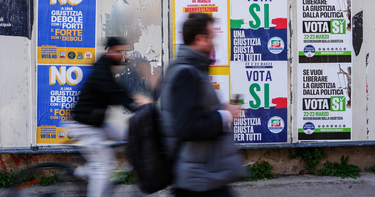 Manifesti per il referendum sulla giustizia del 22 e 23 marzo (foto LaPresse)