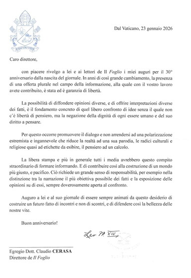 La lettera di Papa Leone per i 30 anni del Foglio