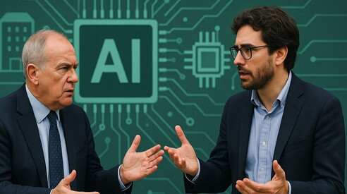 Nel dialogo tra un conservatore e un progressista, il primo denuncia l’assenza di giganti tecnologici, data center e chip, accusando Bruxelles di regolamentare prima di costruire. Il secondo rivendica invece i punti di forza: startup, modelli open source, Chips Act e AI Act
