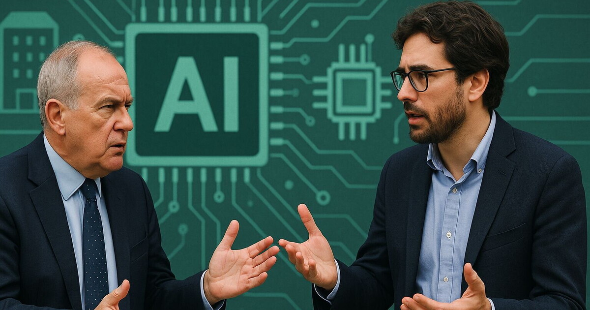 Nel dialogo tra un conservatore e un progressista, il primo denuncia l’assenza di giganti tecnologici, data center e chip, accusando Bruxelles di regolamentare prima di costruire. Il secondo rivendica invece i punti di forza: startup, modelli open source, Chips Act e AI Act