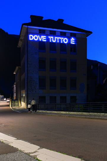 Riccardo Benassi, Così per dire, 2022, proiezione led bianco sincronizzata ai cicli solari, Courtesy l’artista e Fondazione Elpis, Foto © Giulia Di Lenarda / Gerda Studio.