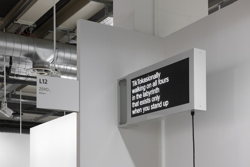 Riccardo Benassi, Daily Desiderio Domestico, 2019 — ongoing, display a LED, CPU, modem Wi-Fi, carter metallico RAL 5018 opaco, software, 119,8 x 50,6 x 12,9 cm, installation view presso ZERO..., Art Basel 2022, Basilea, Courtesy Mario Colleoni Collection, Bergamo, Foto © Andrea Rossetti.