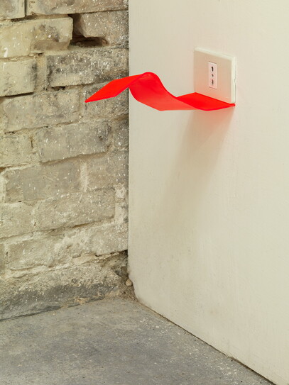 Riccardo Benassi, Dialogues carried out in silence, 2011 - ongoing, Perspex® fluorescente piegato a mano, vernice spray, veduta presso Civitella Ranieri Foundation, Courtesy l'artista, Foto © Dario Lasagni