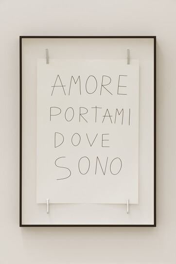 Un ruolo totale, totalizzante. Mi viene naturale poetare. Mi piacciono i lavori che nascono prima come battute, che siano più frammenti di frammenti. Mia nonna, che è stata la mia musa, era una poetessa in tutto quello che faceva. Mi ha passato lei questo meravigliarmi per tutto ciò che mi capita davanti agli occhi. QUANDO MIA NONNA MI INSEGNAVA A RACCOGLIERE LE VIOLE; ERA LA BEATITUDINE. La prima forma di parola, per un artista, sono i suoi titoli. Io ho amplificato questi titoli, fino a farli diventare delle opere a sé. Le parole sono corpi tra i corpi e immagini tra le immagini. La parola ora intreccia le mie performance e unisce tutti gli altri miei linguaggi. In questo momento, c’è più bisogno di dire che di mostrare. La parola ‘poesia’, per me, non è solamente intesa come alta. IO SONO TRA L’ALTO E IL BASSO, sono più per il parlato. Io sono A VOCE SCRITTA.