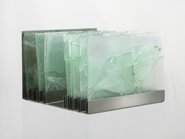Melting of the elements of different coefficients. Only at the highest temperatures, their union is guaranteed. After the cooling and throughout time, it could be known whether the tensions generated by the differences produce any cracks, or the sheets resist. The fragments have been collected in Beyoglu, Istanbul in June 2013. (2014)