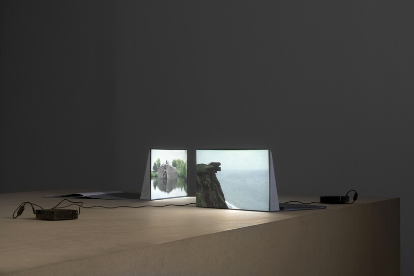 9 video, minidv trasferiti su hard disk, sonoro, durate differenti, 9 mini-proiettori, cemento, carta. Dimensioni ambientali.
