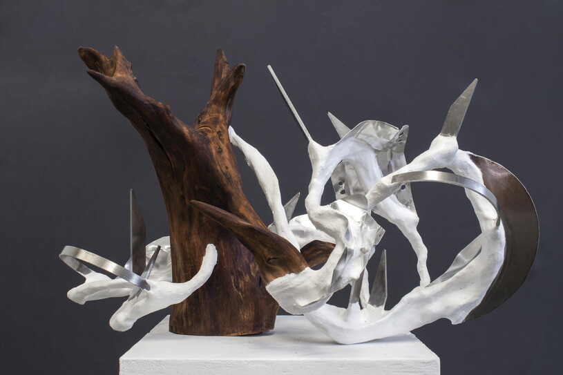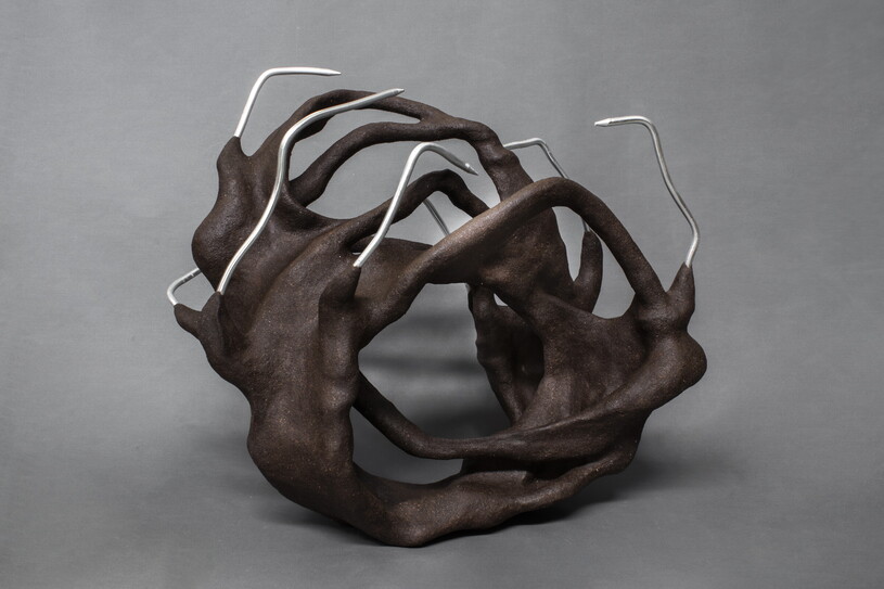 Attualmente ho all’attivo la ricerca Blended Matter frutto della collaborazione con l’Istituto di Biologia dell’Università di Graz, Austria. Ad oggi il lavoro si compone di cinque sculture prodotte a partire da una struttura di alluminio poi coperta con cinque differenti biomateriali: fondi di caffè, farina di semi di lino e colla di farina e zucchero; cellulosa e colla di amido di mais e zucchero; carbone e colla di farina e zucchero; cellulosa + polvere di conchiglie e farina di amido di mais; cellulosa + sabbia + polvere di mattone rosso e colla di farina e zucchero.