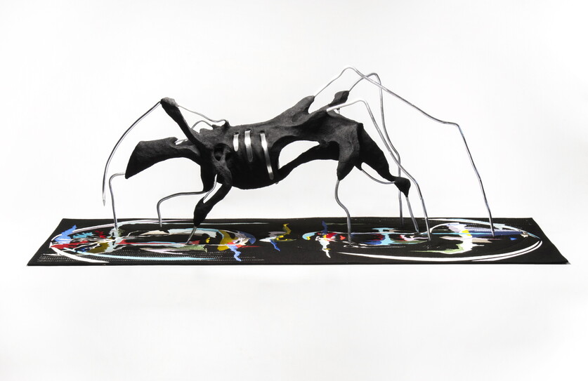 Camilla Alberti, Ci vediamo all'alba, 2023, carbone, colla di zucchero, farina e colla all'acqua, tessuto in feltro ricamato, Courtesy the Artist and Swivel Gallery