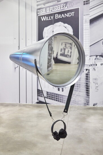 Alluminio, specchio-spia, cuffie, ecopelle, traccia audio, lettore mp3