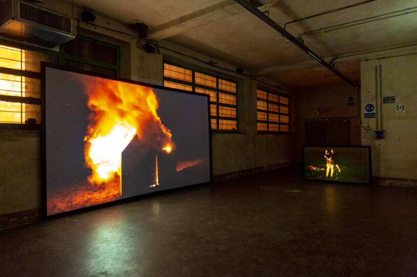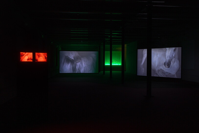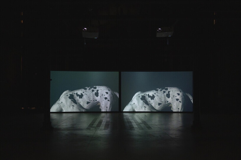 Valentina Furian, Ciacco, 2021, installazione video, installation view at Recreatures, Mattatoio, Rome, It, curata da Ilaria Mancia, Courtesy Azienda Speciale Pala Expo e l'artista