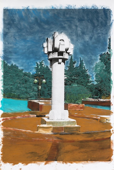Dalla serie Patrimonio Dissidente: Monumento a Belusconi, Milano 2, 100x70 cm, carta cotone e anelina, 2024.