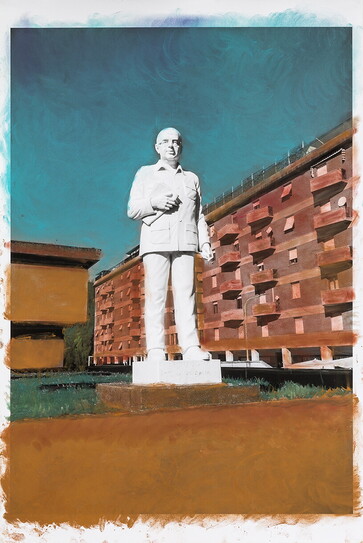 Dalla serie Patrimonio Dissidente: Monumento a Craxi, Aulla, 100x70 cm, carta cotone e anelina, 2024.