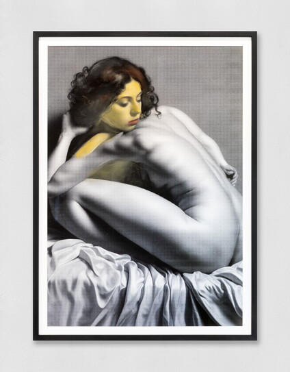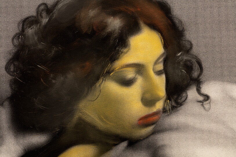 Ho poi fatto elaborare i dati a quattro AI (Dall E 3, Stable Diffusion, Journey, Gencraf) e ne sono nate immagini di corpi stereotipati, privi di empatia, potremmo dire di corporeità, e con numerosi errori, soprattutto anatomici. A volte un piede, le dita di una mano, una spalla. La serie riflette su come stia cambiando la percezione dei corpi che, sempre più rapidamente, sembra farsi più artificiale, clinica, algida. Ho trasformato l’immagine in scala di grigi e poi ho dipinto le parti anatomicamente corrette, riprendendo la tecnica di colorazione fotografica all’anelina. La coloritura delle fotografie, soprattutto prima dell’avvento della pellicola a colori, era una pratica corrente. Inizialmente i pigmenti (acquerello, tempera, pastello) venivano usati per dipingere fotografie di paesaggi reali con colori d’invenzione dell’artista.