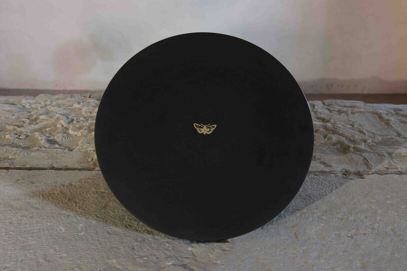 Biomega, 2019, piralide, marmo nero, incisione d’oro dimensioni 100 x 100 cm.