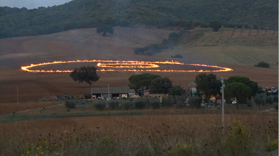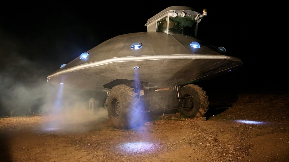 Moira Ricci, Dove il cielo è più vicino (trebbia-astronave), foto di documentazione, courtesy Associazione culturale Dello Scompiglio, 2014.