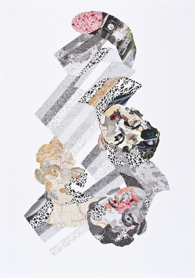 Umberto Chiodi, CROSSAGE XII, collage, paper cut e china su carta, 100x70 cm, 2013