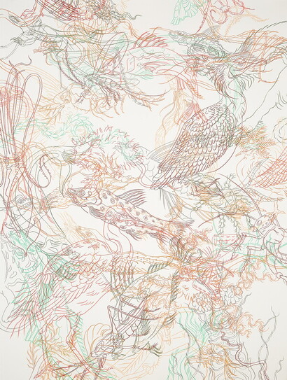 Umberto Chiodi, Bestiario 2, otto matite colorate su carta, 142 x 107 cm, 2023