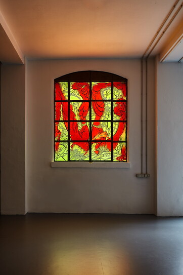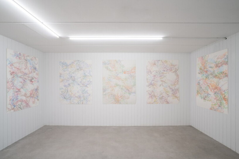 Umberto Chiodi, No, carta e spray su acetato, Vista dell'installazione, Galleria Bonelli, Milano, 2024