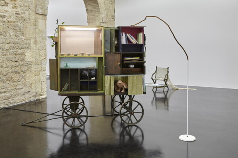 Chiara Camoni con Il Centro di Sperimentazione, Carrozzone, 2021, materiali vari, trovati e presi in prestito cm 220 x 300 x 150 Courtesy l'artista e Arcade, Londra. Foto di Camilla Maria Santini
