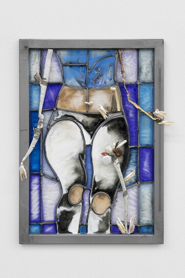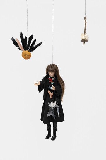 Lucia Leuci, Cenere, 2023, resina epossidica, tessuto, capelli veri, pigmenti, perle, quarzi, coralli, zirconi, vetro, plastica, piume, lana, bronzo, dimensioni variabili, foto di Tiziano Ercoli