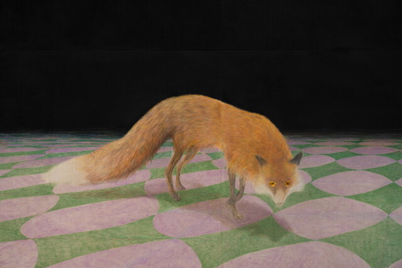 2- Valerio Nicolai, Sole con le code, 2022 (Detail) Crayons and acrylics on wood panels,