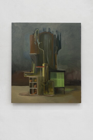 10- Valerio Nicolai, Nuova Carboneria, 2023 Oil on canvas, wood structure, laptop, engines,