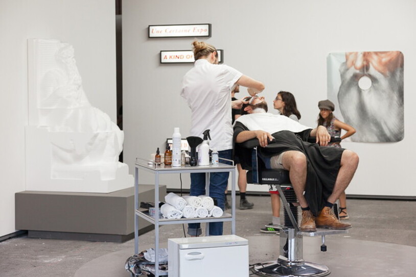 La partecipazione del pubblico è un tema che ci ha sempre interessato molto. La nostra prima mostra di un certo spessore, in cui avevamo presentato la prima parte di Approximation to the West, conteneva una notevole quantità di apparati per agevolare la comprensione della storia alle spalle del progetto. A Kind of Display cercava di coinvolgere il pubblico tramite una pedana su cui era posizionata una sedia da barbiere e venivano offerti tagli di barba gratuitamente per la prima settimana di apertura. In Karma Fails il pubblico è tutto: le sessioni di meditazione fanno accadere il progetto all’interno dell’immaginazione dei partecipanti. E anche quando il coinvolgimento non è esplicitato c’è sempre uno spettatore ideale che interpelliamo e al quale rivolgiamo la nostra attenzione.
