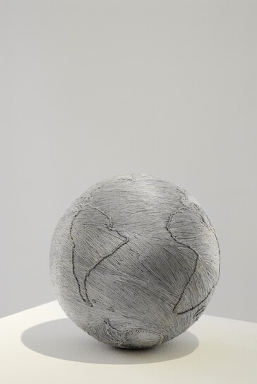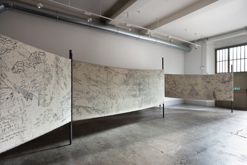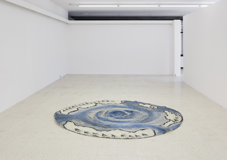 Claudia Losi. Poli Arctici Constitutio, 2016; silk, wool, embroidery, ø 250 cm. Installation view a Collezione Maramotti, Reggio Emilia. Ph. Andrea Rossetti.