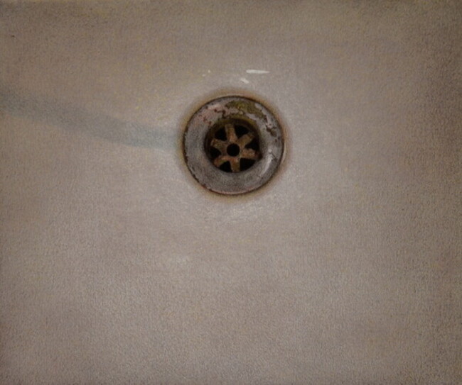 Chiara Enzo, Senza titolo (Scarico), 2014. Tempera gouache, pastello, matite colorate su carta applicata su tavola,
