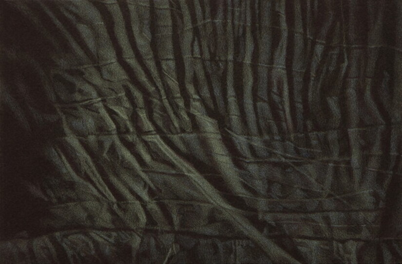 Chiara Enzo, Lenzuolo scuro, 2024. Pastello e matite colorate su carta applicata su tavola, 10 x 15 cm. Tony and Trisja Podesta Collection, Washington DC.