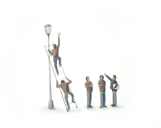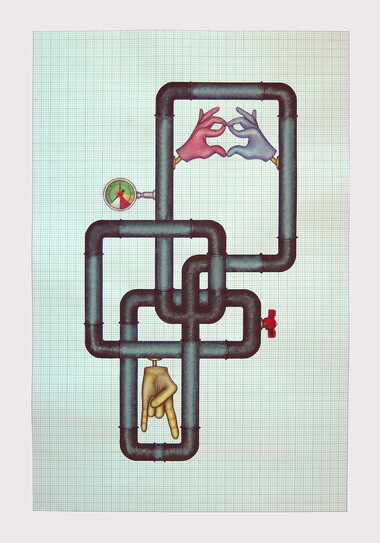 Nel 2007 esposi una serie di “vignette” acquerellate dal titolo Oh, Les Italiens! Con stile illustrativo mettevo in fila tutta una serie di tic e stereotipi legati all’italianità vista dal di fuori dei nostri confini geografici. A Milano in quel periodo proliferavano artisti di matrice fortemente concettuale; non era un buon momento – al contrario di oggi - per la pittura e per il disegno con figure umane. In quel panorama mi sentivo un po’ fuori luogo con il mio lavoro e questo sentimento stimolò in me il desiderio di esporre ciò che in giro non vedevo. In quel periodo collaboravo con il gallerista Pasquale Leccese - la cui ultima preoccupazione nella vita era quella di omologarsi a qualsivoglia tendenza - che appena vista la serie mi fece fare subito una mostra nel suo spazio.