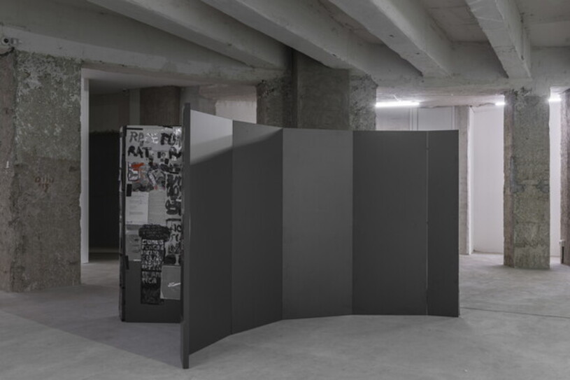FLX Recorder – Screen Pavillon, 2022–2024, pannelli laminati, stampe alla gelatina d’argento, inchiostro su carta e trasparenze, 180 x 480 x 211 cm.