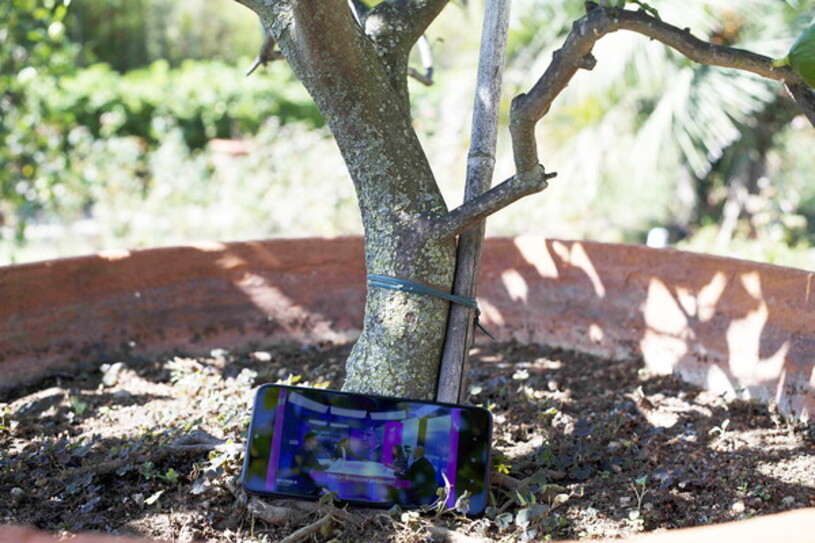 Cross, 2025 – quattro smartphone e quattro piante di limoni (particolare dell’installazione) dimensioni ambientali