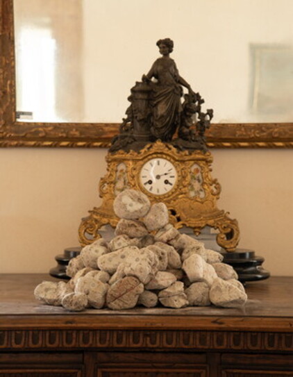 ”Lipari” 2021, pietre pomice naturali, micro magneti, campi elettromagnetici impostati sulle frequenze di Schumann, sistema audio. Dimensioni variabili.