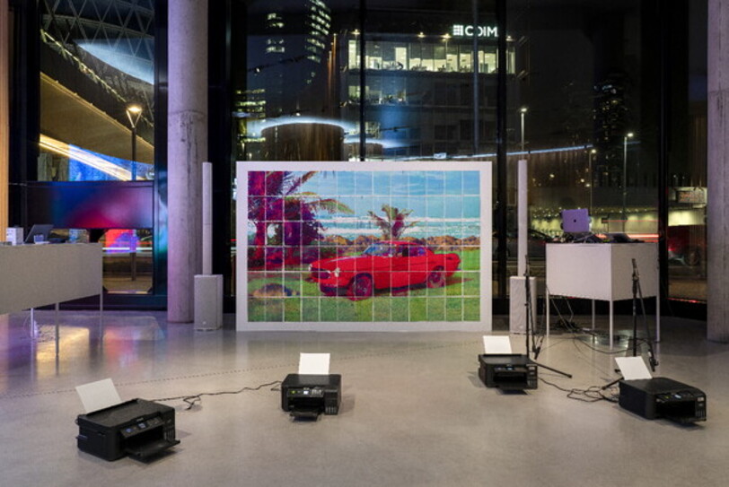 Ho impiegato un’ora per stampare questi 72 fogli che ritraggono il primo modello iconico della storia Volvo, utilizzando quattro stampanti. Nel frattempo il pubblico faceva aperitivo e Davide accompagnava il processo con un tappeto sonoro.