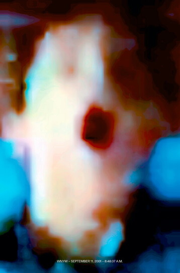 WNYW interrompe le trasmissioni: la prima torre del World Trade Center è in fumo.