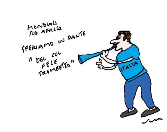 Così Vincino ha disegnato la Coppa del Mondo in Sudafrica sul Foglio.