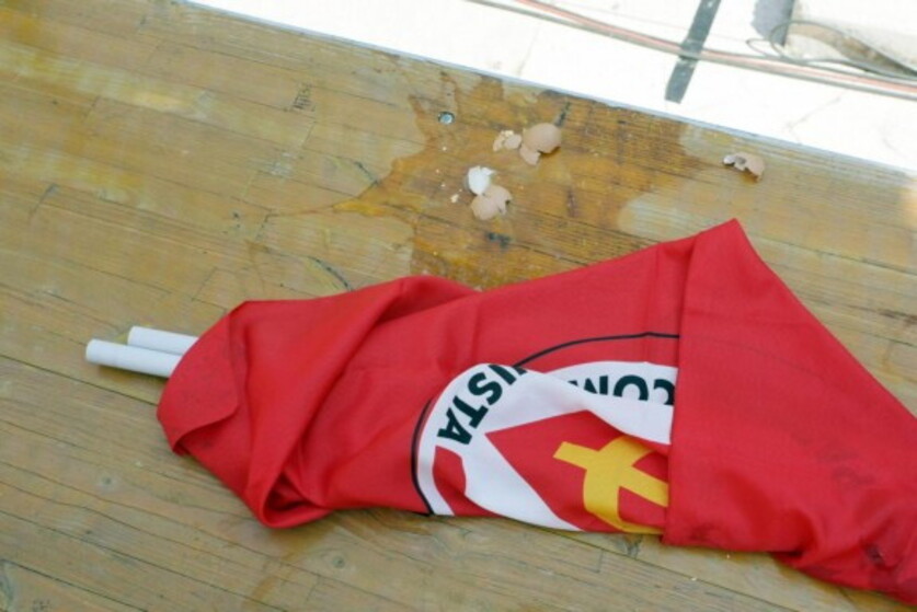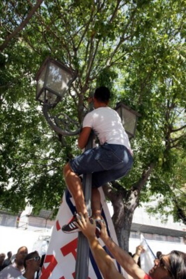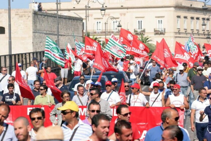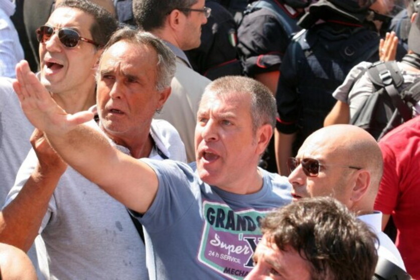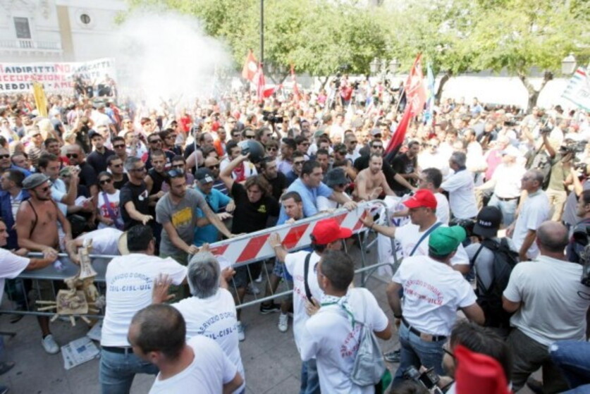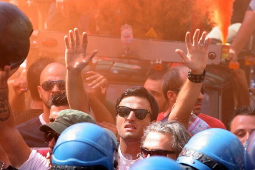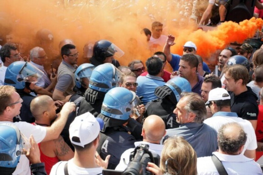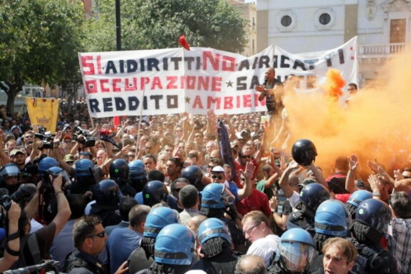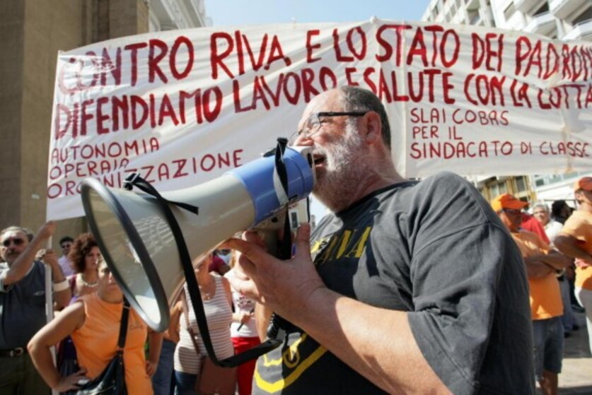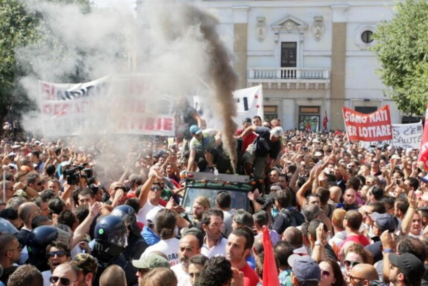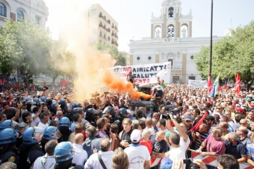 Contestatori al comizio per l'Ilva