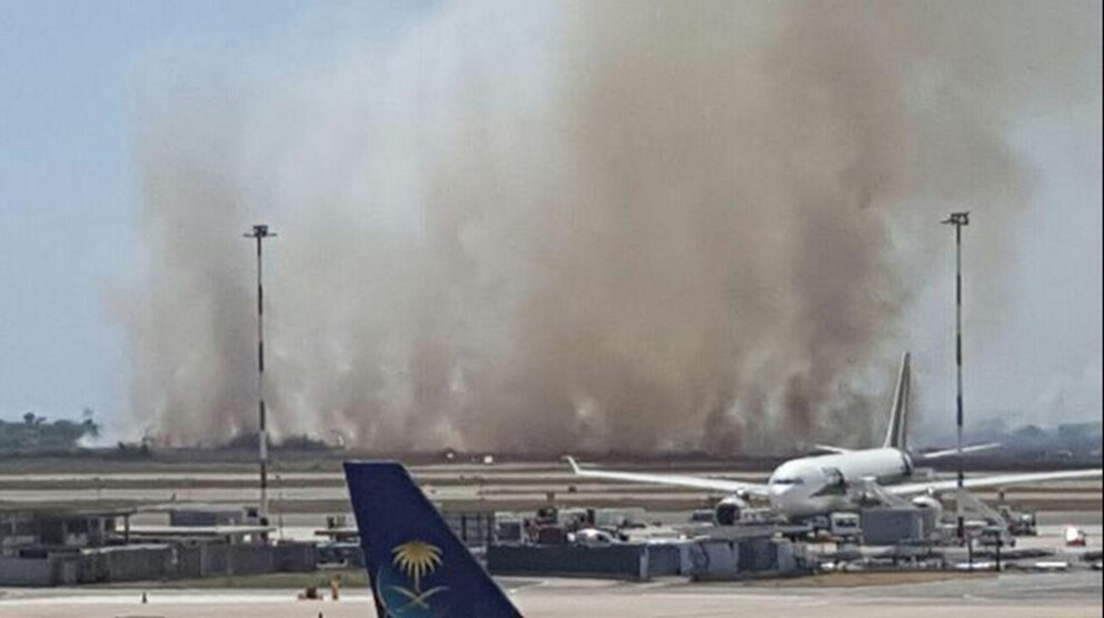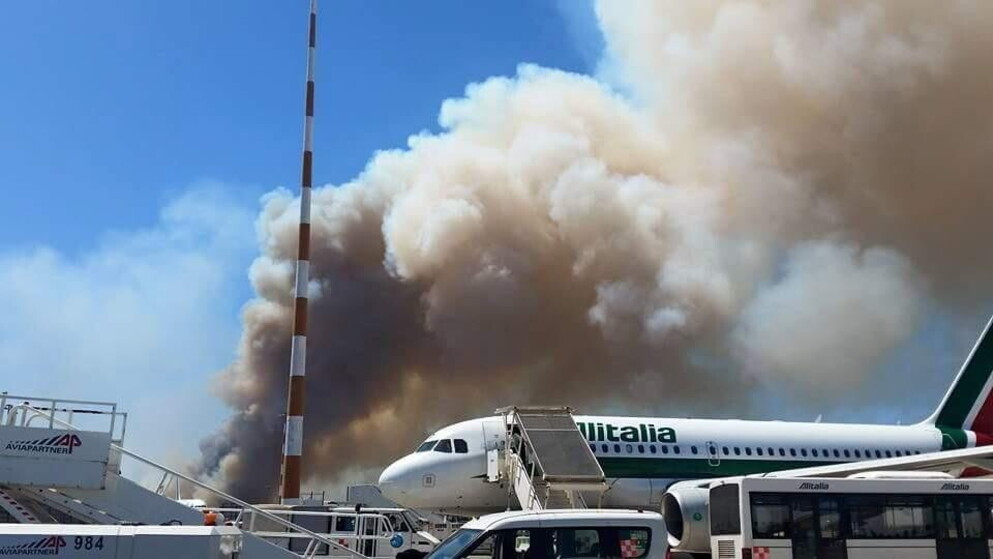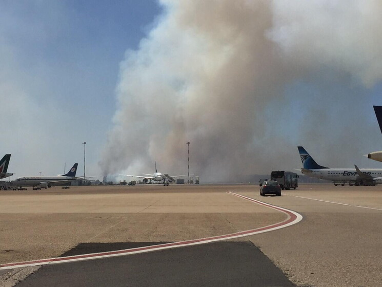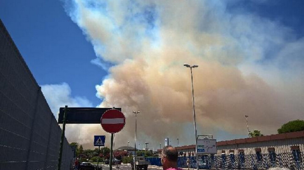 Fuoco, non si vola. Un incendio nelle pinete attorno a Fiumicino blocca l'areoporto di Roma