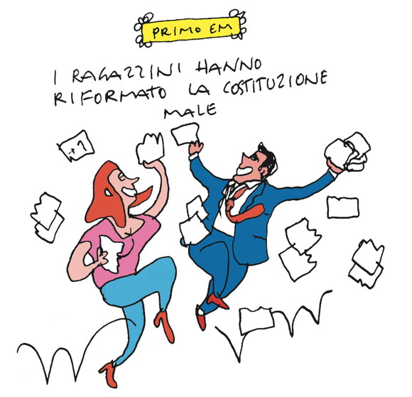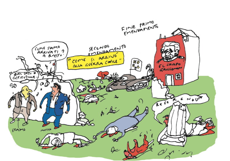 Emendamento numero uno. Le riforme di Renzi e il dopo Casaleggio nel M5s visti da Vincino