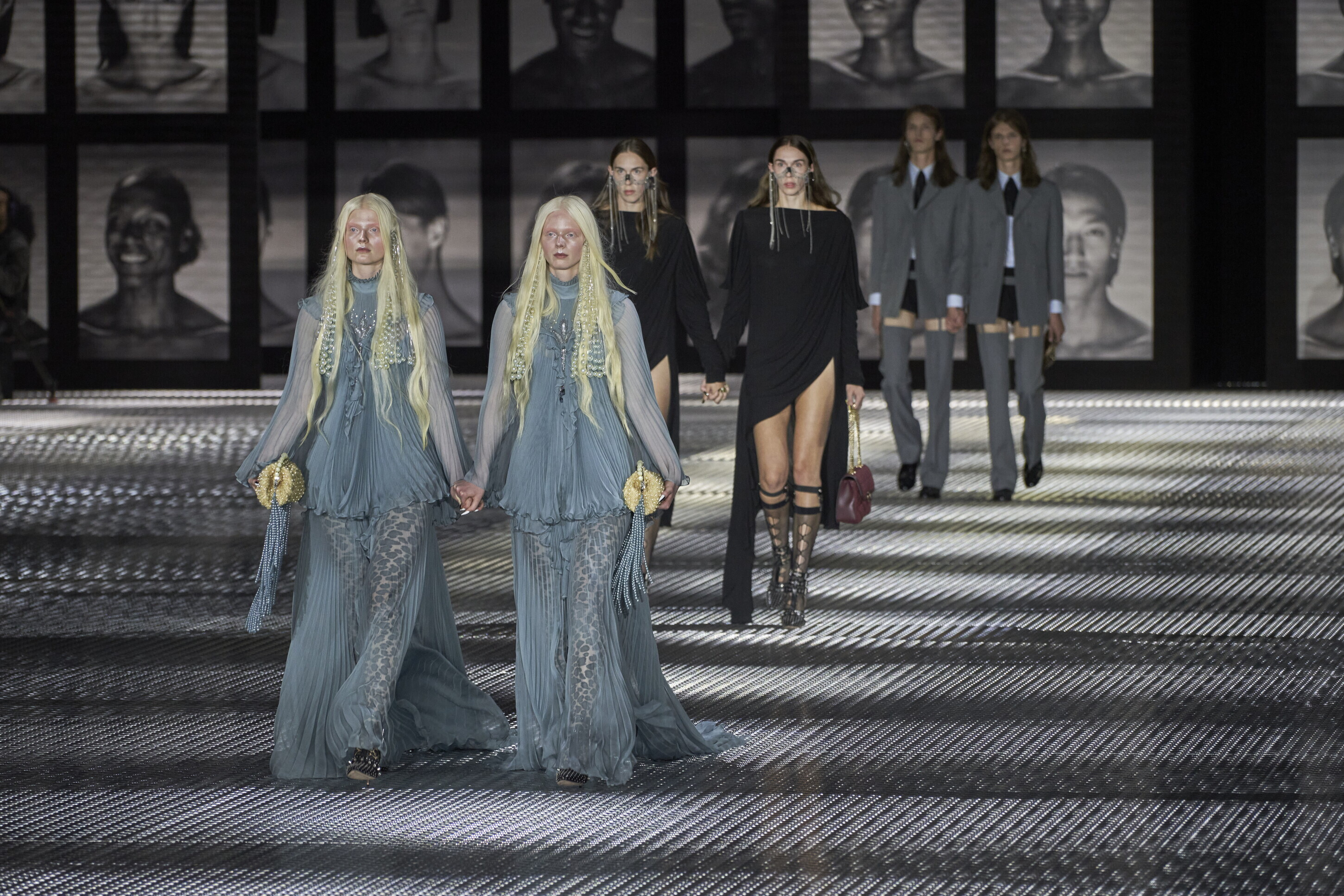 Il clamoroso show di Gucci, sessantaquattro gemelli, una grande riflessione sul tema del doppio, dimostra che per restare rilevanti in questo settore che fagocita creativi come Crono non ha importanza fare ogni volta una collezione diversa, ma raccontare la vita e le sue evoluzioni