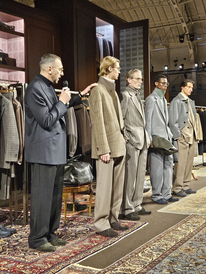 Nel vocabolario di queste sfilate, di queste infinite cartelle stampa, di queste chiacchiere a bordo campo, è la prima volta che si nota tanta intensità di adesione al passato, di questa “appartenenza, anche mentre cerchiamo la novità”, che è quanto diceva ancora Miuccia Prada dopo aver mandato in passerella una serie di look che potevano sembrare ovvi – camicia, maglioncino, cappotto – solo a uno sguardo distratto, così come meritavano di essere guardati a vicino i pantaloni con le grosse pinces e i blazer blouson dai doppi colli e il “triplo petto” (un bottone in più che permette di aumentare le proporzioni, invenzione depositata) di Zegna, ispirati dall’armadio di famiglia, a Trivero, nel cuore della Valdilana da dove originano, appunto, le più belle lane nazionali. Abiti come un lessico famigliare (no, non il tremendissimo trio che ha rubato il titolo alla meravigliosa autobiografia dei Ginzburg per farne un esercizio di upcycling di valore men che scolastico, del tutto avulso dalla realtà di questo momento storico e incomprensibilmente premiato dal Fashion Trust), come pagine di un diario che, dice invece il direttore creativo di Zegna, Alessandro Sartori, “scriviamo lungo tutta la nostra esistenza”. Anche lui, come Prada, come Brunello Cucinelli che reinterpreta a ogni stagione l’asciuttezza dei guardaroba delle sue campagne umbre, come Kiton che guarda alla perfezione del taglio ricercato ossessivamente dal fondatore Ciro Paone e si ostina a fare tutto a mano, quattro macchine da cucire e centinaia di sarti, come Stefano Ricci che ritiene il micronaggio delle lane cashmere e la perfezione di un tricot un argomento degno di studio e di approfondimento, come il giovane giapponese Shinya Kozuka che costruisce un racconto di moda, fra grembiuli e lane cotte, attorno alla perdita di un guanto nella neve, e dove sono le nevi di un tempo, ecco, i brand e gli atelier che paiono avere qualcosa da raccontare oggi cercano nel passato, nelle origini, il motivo del loro lavoro.