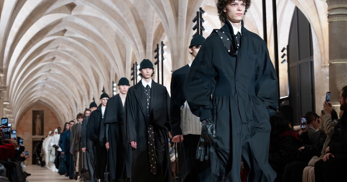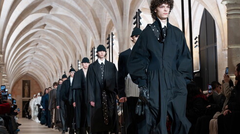 Il titolo della collezione autunno-inverno 2026 di Im Men è "Formless Form" (in italiano "Forma senza forma") e racchiude un eccezionale ragionamento semantico che descrive in due parole gli abiti della prossima stagione e in generale la filosofia del brand. La linea maschile, che è l'evoluzione ideale di Im Product, sviluppato da Issey Miyake tra gli anni Settanta e i Novanta, esiste dal 2021 e prende slancio da "A Piece Of Cloth" (A-Poc), altro progetto della maison nipponica, che trasforma un semplice quadrato di stoffa in abiti. Ha debuttato in passerella un anno fa ed è disegnata da un design team composto da Sen Kawahara, Yuki Itakura, entrambi con formazione ingegneristica declinata sul design, e Nobutaka Kobayashi, specialista di tessuti. In prima battuta, il concetto di forma-senza-forma potrebbe rimandare alla silhouette, tratto distintivo di Miyake, ma in realtà riguarda l'abbigliamento formale. Si tratta di un processo meta-linguistico che proveremo a spiegare in breve: il pensiero giapponese ha aggiunto nel tempo un nuovo livello al processo creativo adattando i kanji, gli ideogrammi, all’alfabeto occidentale. Considerando che, nella lingua giapponese, un segno può avere diversi significati e letture, questo processo mette in atto la stessa regola, applicandola al tema della parola: così "form" passa da quattro lettere a un unico significante che, in base al suffisso, può voler dire form-a ma anche form-ale. E questa è l'ispirazione della collezione presentata nei giorni scorsi a Parigi. "Volevamo creare un nuovo modo di rappresentare l’abbigliamento, sebbene non in modo letterale", spiega Kawahara. "Partiamo sempre dall’idea che sottende a A-Poc per dare vita a qualcosa che una volta indossato nel quotidiano, faccia venire spontaneamente voglia di camminare più dritti, di darsi un tono, come si fa con un completo classico. “Formless Form” viene da qui, per relazionarci e interpretare il rapporto tra la parola “forma” e il formalwear. Volevamo anche esprimere un concetto giapponese che chiamiamo chanto suru, che è difficile da tradurre", prosegue. "Potremmo intenderlo come il fare le cose nel modo giusto, concentrandosi completamente sul compito e dando il massimo nel momento in cui si esegue. Non esiste un'espressione diretta, ma ha a che fare con qualcosa di corretto, di dritto, di rigoroso. Volevamo che questa sensazione fosse presente negli abiti, come se fosse cucita all’interno della collezione".